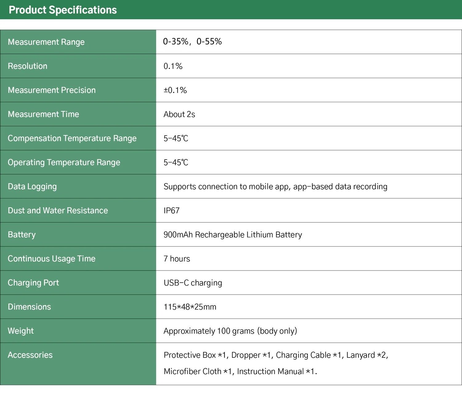 • Resolution: ±0.1%.