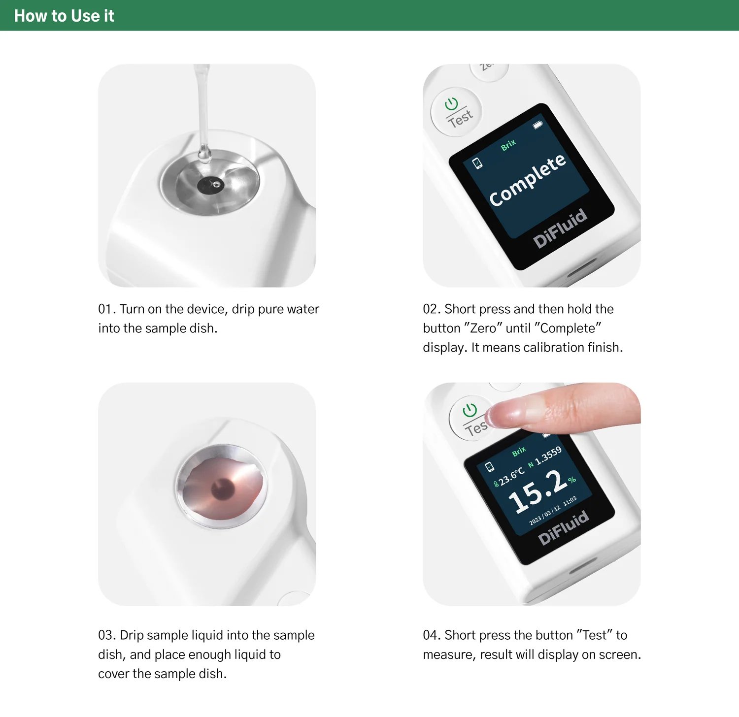 • Used for measuring the sugar content and concentration in fruits, vegetables, beverages, and more.